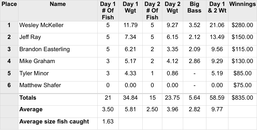 Date Lake Ramp Time Boaters Results Co-Anglers Results