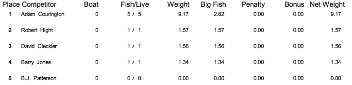 10/15/16 Alabama River Cooter's Pond Safe Daylight Boaters Results Co-Anglers Results