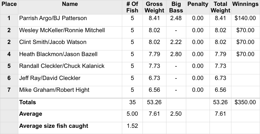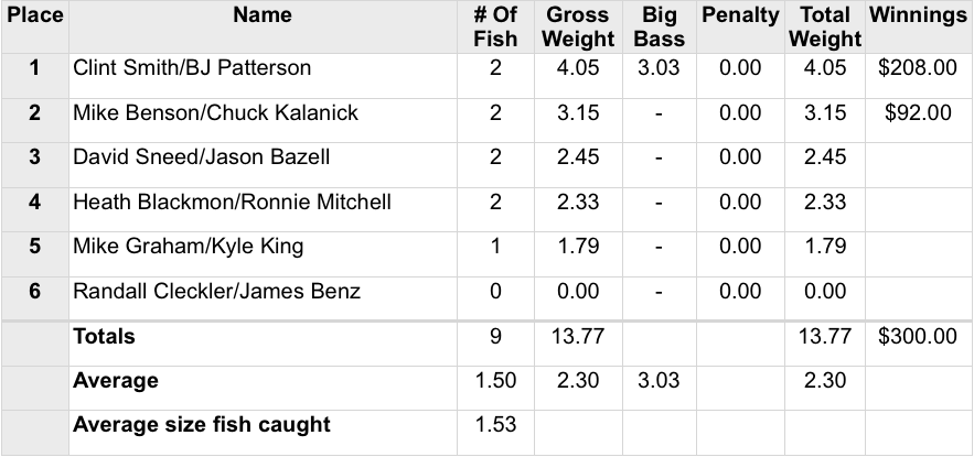 8/19/18 Jordan *Big Fish Bonner's 4:00 PM Results